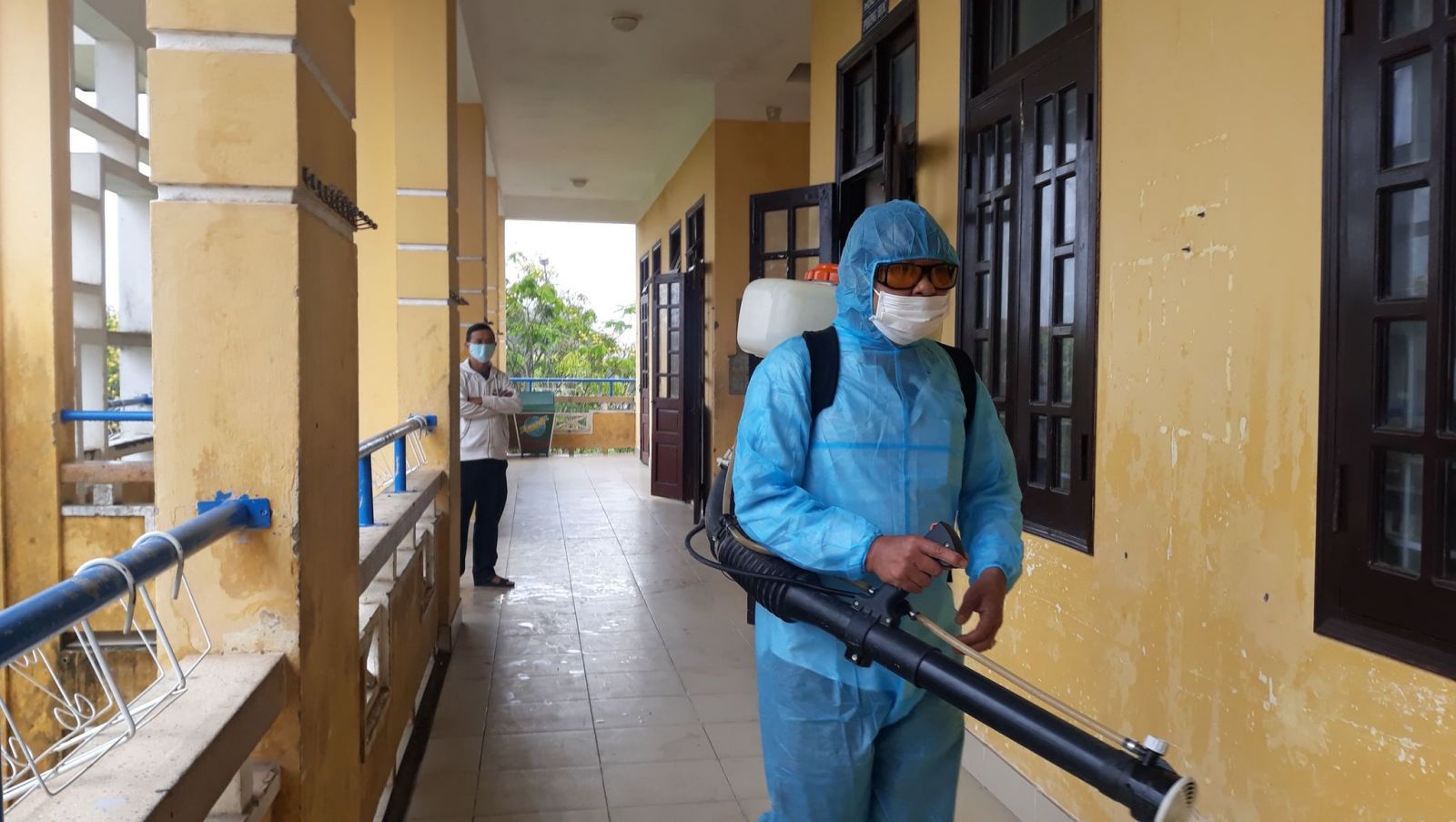 Phun thuốc khử trùng tại các điểm thi