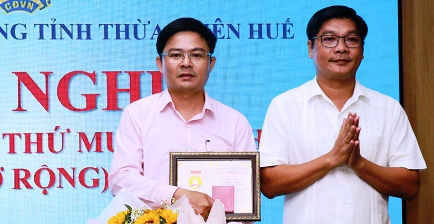 | Thầy giáo Nguyễn Anh Long (trái) nhận bằng khen Lao động sáng tạo trong phong trào thi đua yêu nước năm 2022 |