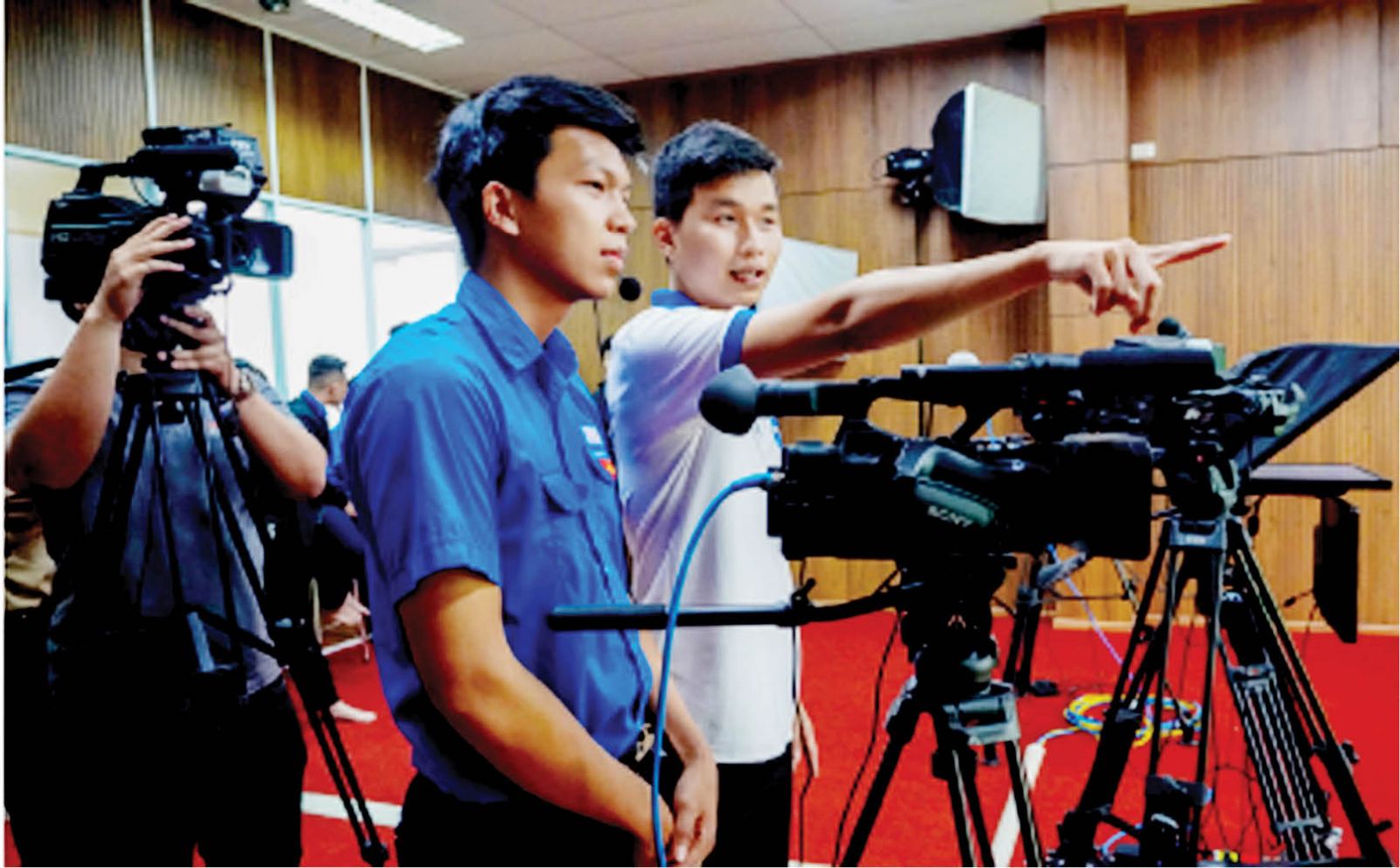 Sinh viên Khoa Báo chí - Truyền thông thực hành quay phim (Ảnh: BCTT)