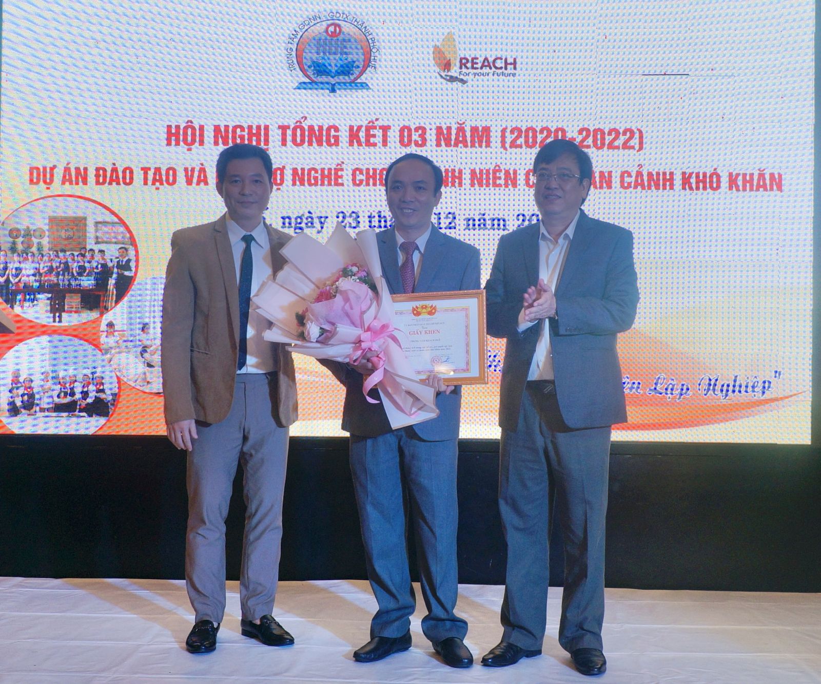 HNN.VN - Tối 23/12, Trung tâm Giáo dục nghề nghiệp - Giáo dục thường xuyên thành phố Huế phối hợp với Trung tâm Reach Huế tổ chức Hội nghị tổng kết 3 năm (2020 - 2022) dự án đào tạo và hỗ trợ nghề cho thanh niên có hoàn cảnh khó khăn.