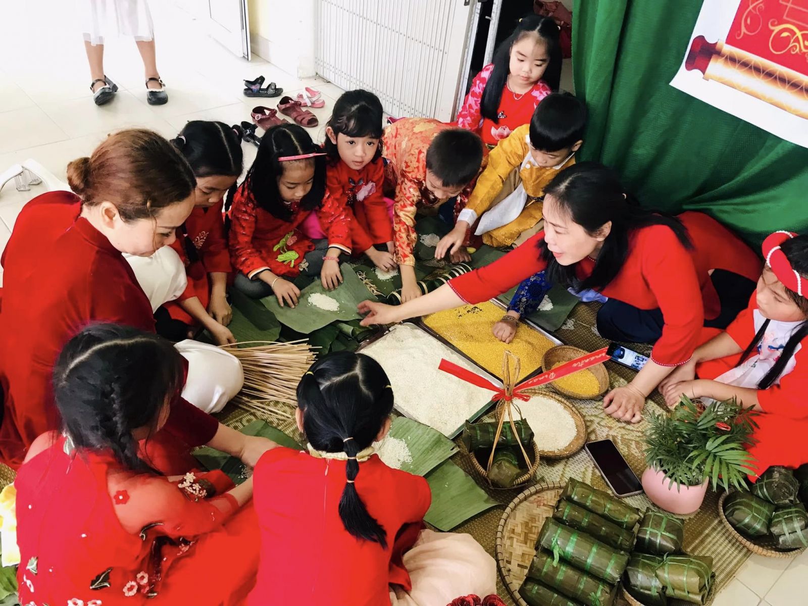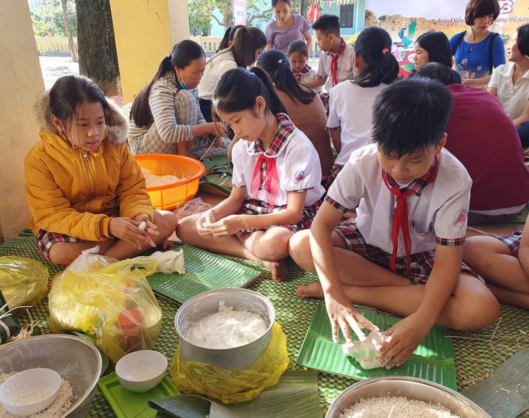 Học sinh học làm các loại bánh lá trong ngày Tết