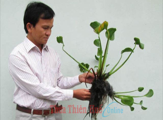 Thầy Nguyễn Văn Tám giới thiệu tác dụng của rễ cây lục bình trong chữa vết gãy cho các loại cây trồng
