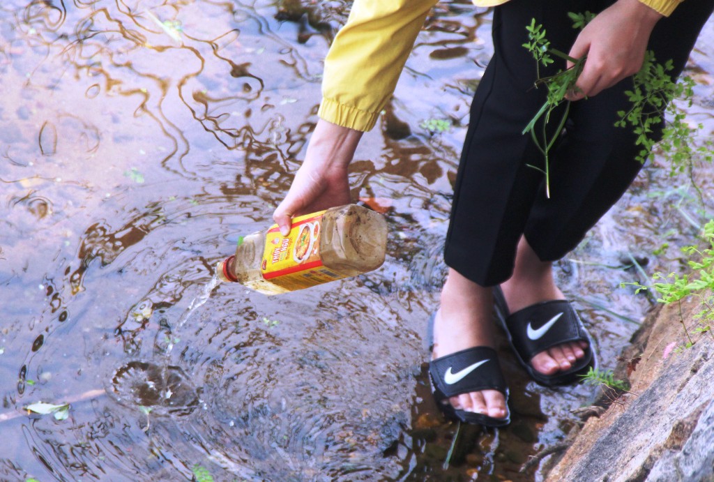 Chai nhựa tấp vào bờ sông Hương được một võ sinh nhặt lên