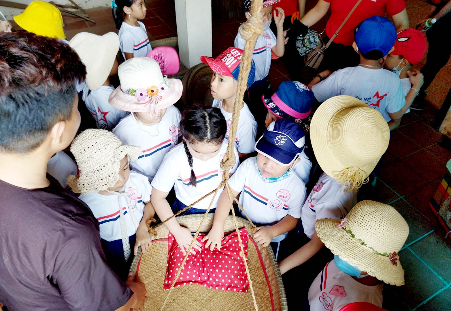 Nhiều em học sinh thành phố, lần đầu thấy chiếc nôi bằng tre