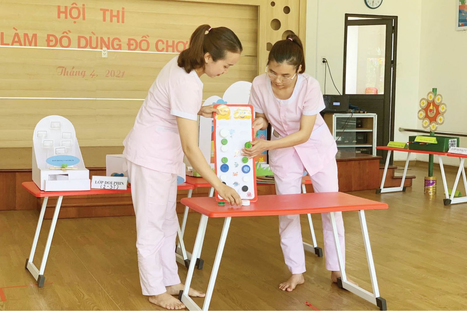 Giáo viên Trường mầm non Scavi tại hội thi tự tạo đồ chơi cho các em (Ảnh chụp trước thời điểm bùng phát dịch COVID-19)