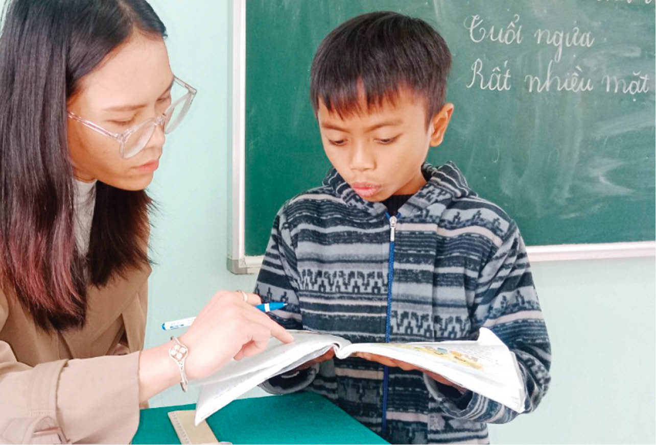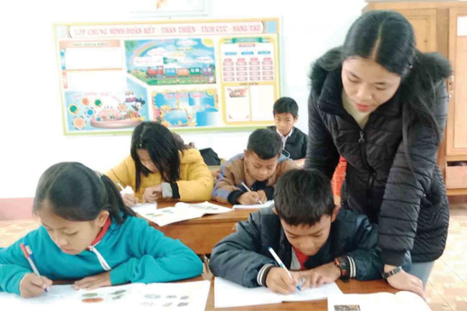 Cô và trò Trường tiểu học Hồng Quảng (A Lưới)