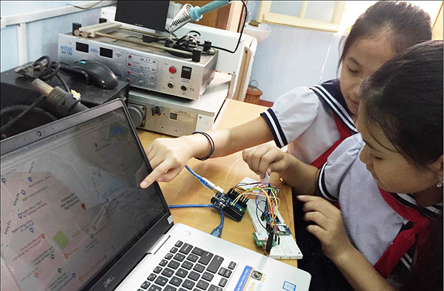 Quỳnh Hương cho hay, sản phẩm được thiết kế và thực hiện dựa trên nền tảng Arduino. Đây là một nền tảng mở, được hỗ trợ nhiều từ cộng đồng và đặc biệt là số lượng các mô - đun mở rộng cũng như các thư viện hỗ trợ đi kèm.