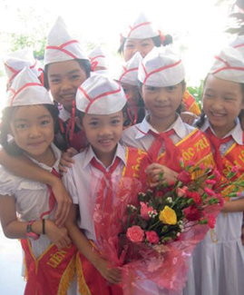 Thuỳ An (giữa) trong ngày Hiến chương Nhà giáo năm học 2011-2012