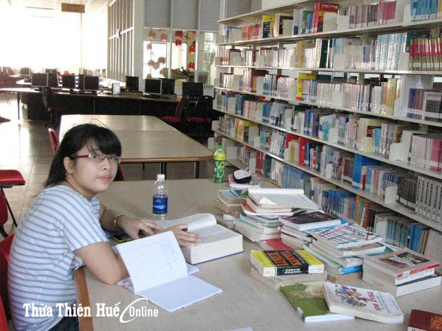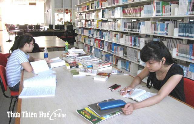 Sinh viên học và tham khảo sách chuyên ngành tại Trung tâm Học liệu - Đại học Huế