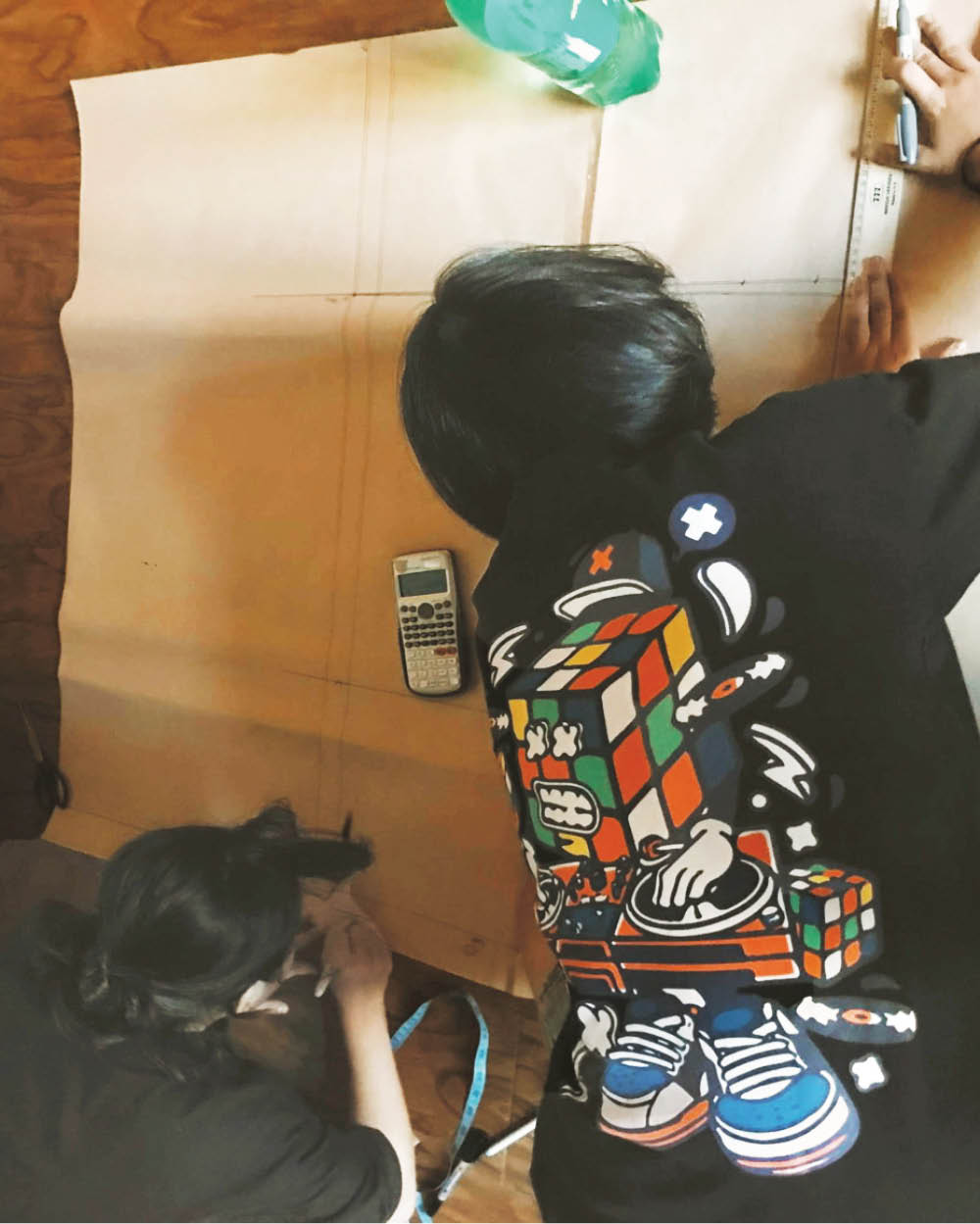 Cùng nhau thiết kế những bộ trang phục. Ảnh: Quốc Học di Selvaggi