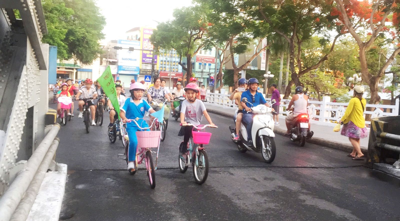 Trên những chặng đường đi qua, học sinh vừa đạp xe vừa hô vang khẩu hiệu: “Tính mạng con người là trên hết”, “Điều khiển xe đúng làn, dừng đúng vạch”, “Đã uống rượu, bia thì không lái xe”; “Đội mũ bảo hiểm khi đi xe máy”… nhằm tiếp tục lan tỏa ý thức tham gia giao thông văn minh, an toàn đến mọi người.