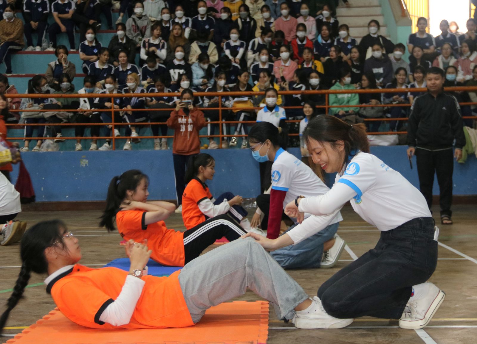 Các sinh viên tham gia 3 hoạt động liên hoàn (thành tích tính theo thời gian hoàn thành, thể hiện các tố chất nhanh, mạnh, bền, khéo léo), bao gồm: Nằm ngửa gập bụng, bật xa tại chỗ, chạy luồn cọc (2 lần x 10 mét).