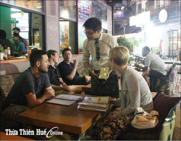 Anh Hoàng Đức Sỹ, quản lý DMZ bar, cho hay: “Quán mình phần lớn khách đến từ châu Âu, châu Úc và châu Mỹ, một số khác đến từ Nhật Bản, Hàn Quốc. Các nhân viên làm thêm ở đây là sinh viên Trường đại học Ngoại ngữ, đại học Kinh tế, Khoa Du lịch hay Trường cao đẳng nghề Du lịch, đến làm chủ yếu là để học ngoại ngữ. Thời gian đầu, các em thường rụt rè, phản xạ giao tiếp yếu. Sau khoảng 2 đến 3 tháng thì tự tin và chủ động hơn hẳn”.