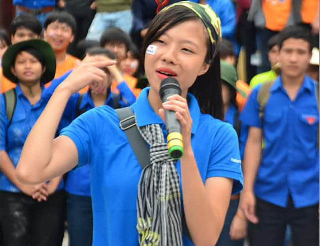 Như Quỳnh điều hành trò chơi trong đợt trại truyền thống 26/3/2016 ở trường ĐH Khoa học Huế