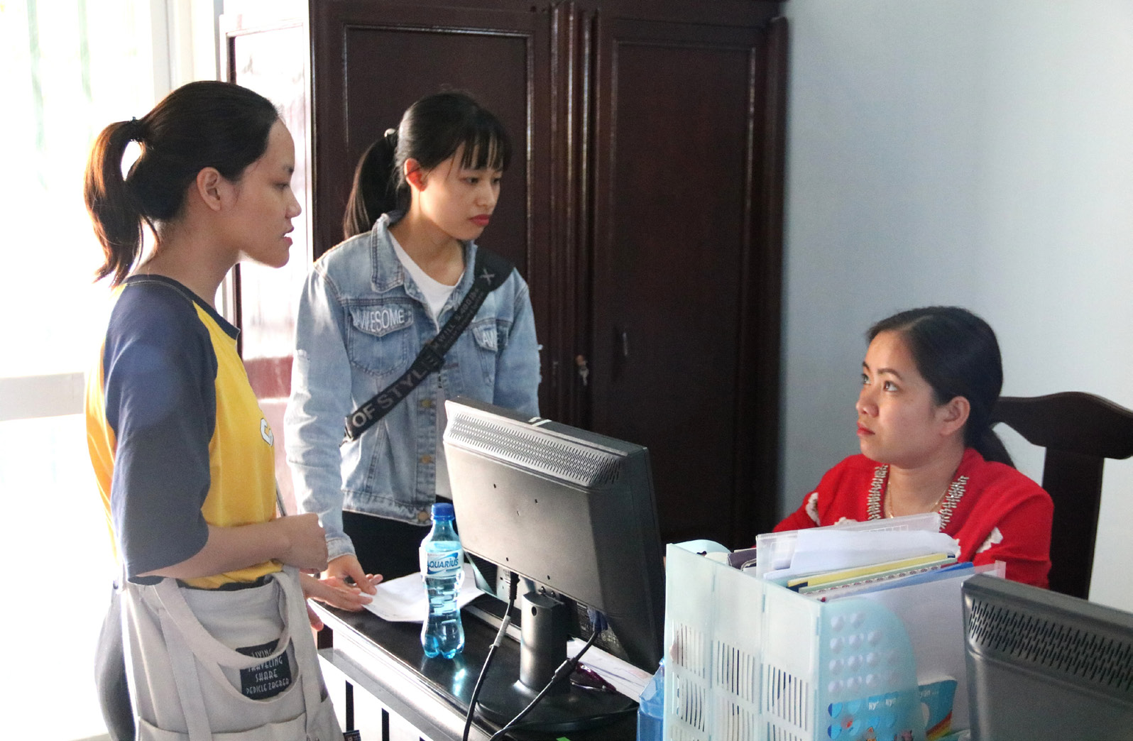 Cán bộ Trung tâm tư vấn và Hỗ trợ sinh viên Trường ĐH Ngoại ngữ, ĐH Huế trao đổi với sinh viên