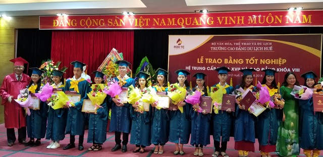 HNN.VN - Sáng 8/8, Trường cao đẳng Du lịch Huế tổ chức lễ trao bằng tốt nghiệp cho sinh viên cao đẳng khóa 8, Trung cấp khóa 17 và tổ chức ngày hội việc làm năm 2018.