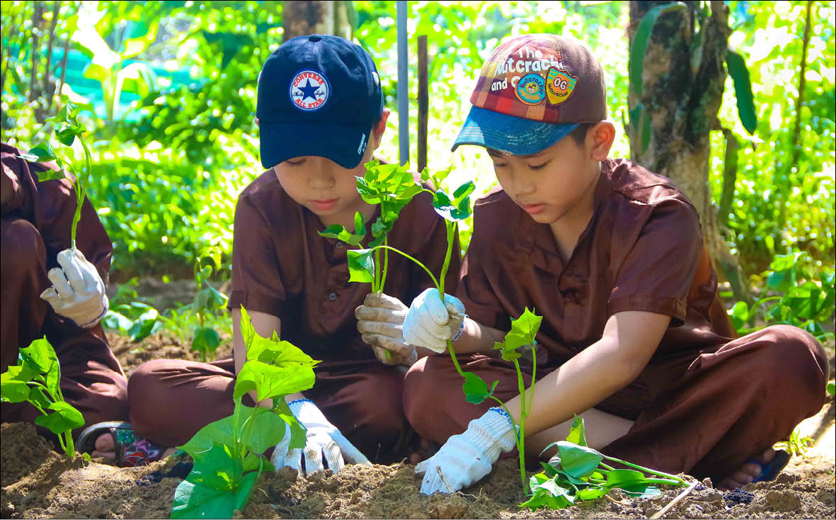 Các bạn nhỏ trồng rau tại Nông trại Giáo dục Hoa Sen