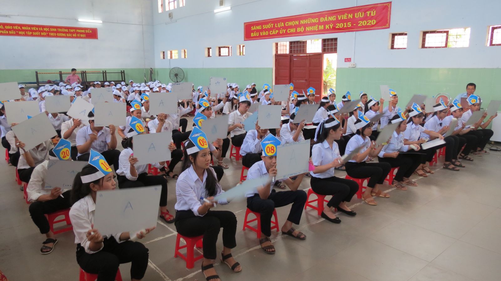 Các em tham gia trả lời các câu hỏi hội thi rung chuông vàng với chủ đề “ Chúng em bảo vệ nguồn lợi thủy sản quê hương”