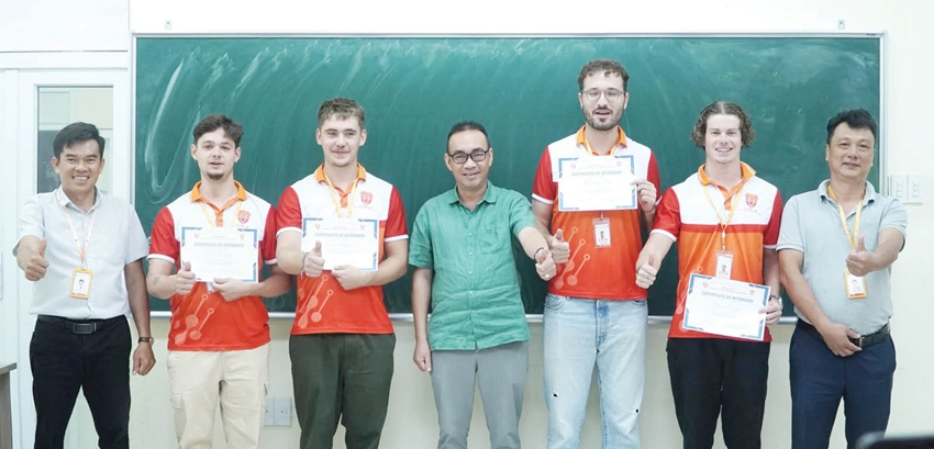 | Sinh viên quốc tế tại buổi báo cáo kết quả thực tập tại Khoa Kỹ thuật và Công nghệ - Đại học Huế |
