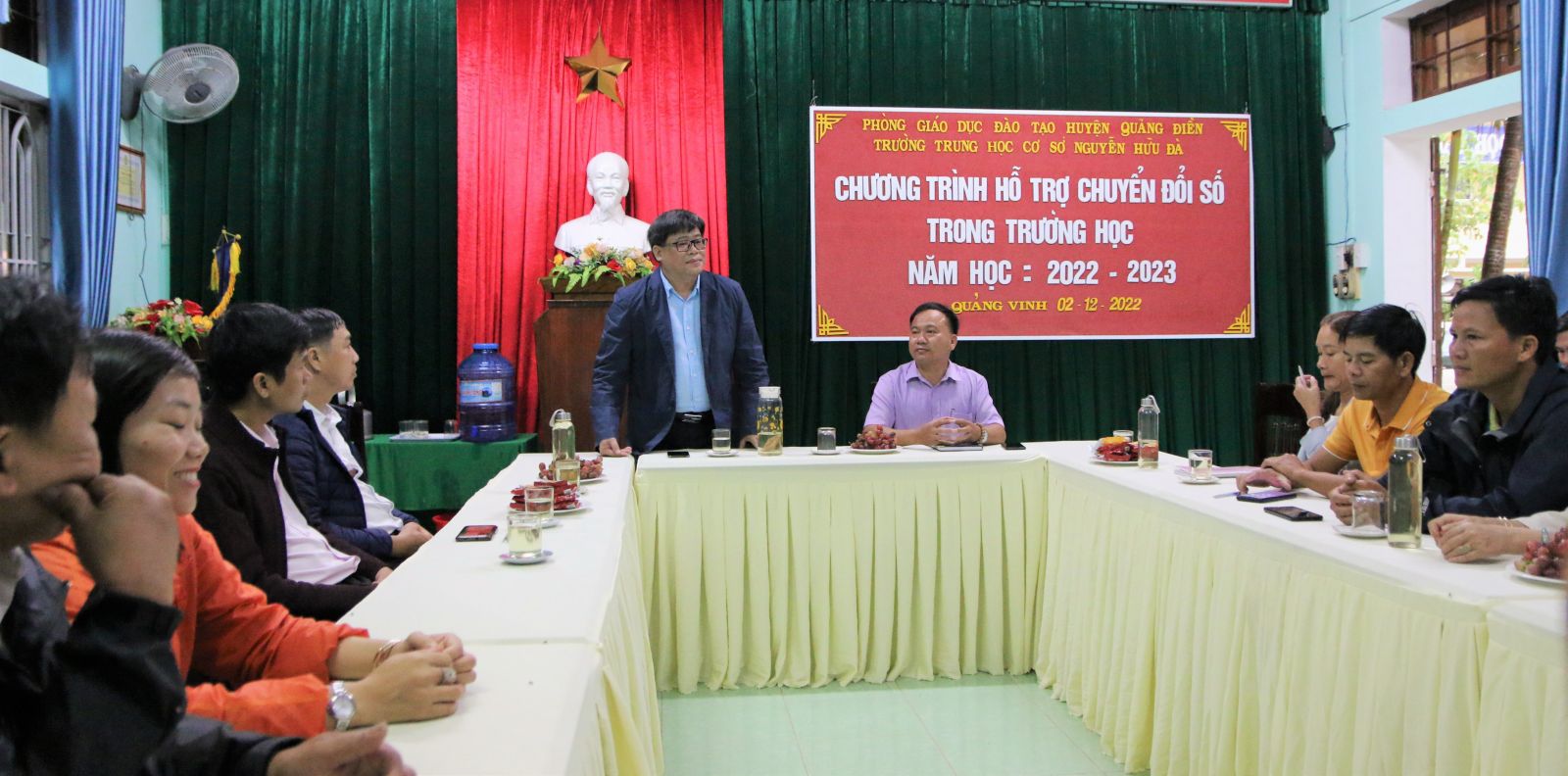 HNN.VN - Trung tâm Công nghệ thông tin (CNTT) tỉnh –HueCIT phối hợp với Hội CNTT và Điện tử viễn thông - HueDITA vừa có buổi làm việc với Trường THCS Nguyễn Hữu Đà (xã Quảng Vinh, huyện Quảng Điền) về tiếp nhận, hướng dẫn và tháo gỡ các khó khăn, vướng mắc của các thầy cô giáo về ứng dụng CNTT trong hoạt động giảng dạy, hướng đến chuyển đổi số trong giáo dục tại nhà trường.