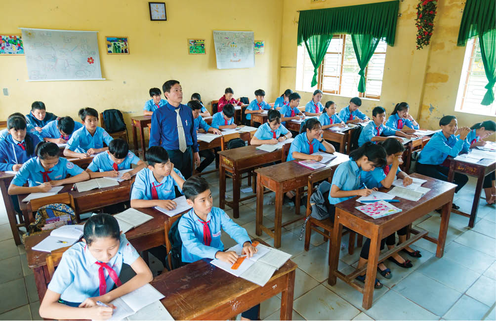 Giáo viên ở làng Phước Tích đang dạy ở Trường THCS Phong Hòa