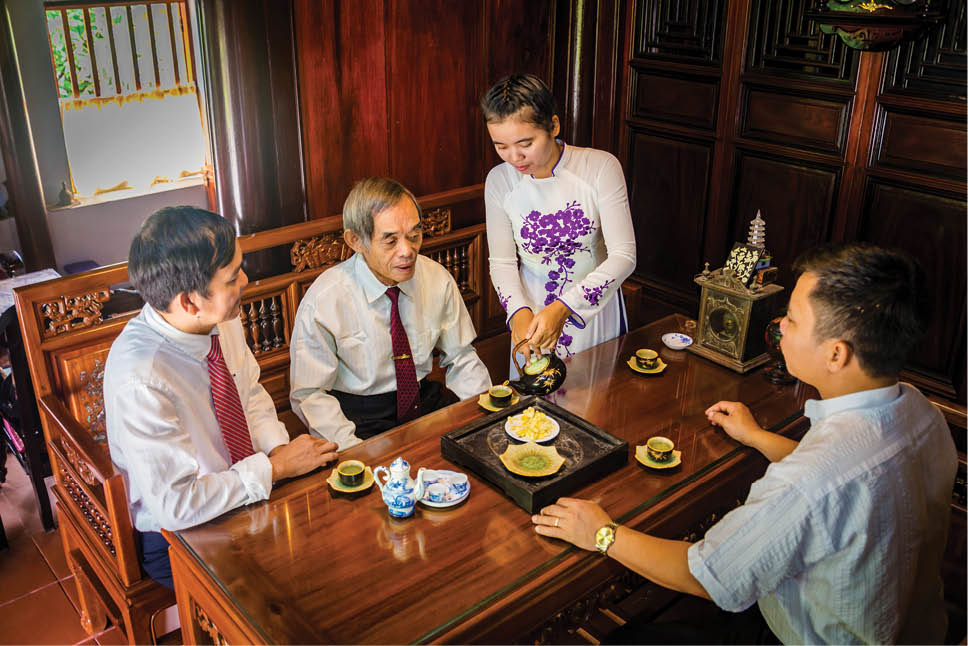 Trong những ngôi nhà rường hàng trăm năm tuổi, câu đối hay bức hoành phi được đặt ở vị trí trang trọng. Gian bên trái của nhiều ngôi nhà truyền thống vẫn còn lưu giữ những tủ sách gia đình. Chúng tôi đến nhà ông Lê Trọng Đào, giáo chức về hưu cũng là gia đình có đến 6 người theo nghề giáo. Những trang giáo án, những cuốn sách quý được ông lưu giữ cẩn thận như những kỷ vật quý giá. Vợ chồng ông giáo làng ở tuổi 75 ánh lên niềm tự hào khi kể về những cô cậu học trò: “Hồi ấy, nhiều em ăn uống thiếu thốn nhưng sách vở lúc nào cũng tươm tất. Các em ham học lắm, hễ rảnh rỗi là lại sang nhà thầy mượn sách để đọc. Thuở xưa, tiền bạc không có, sách lại khan hiếm nên hễ đọc được thông tin hay tôi lại chép ra sổ để các em tham khảo”.