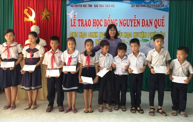 Cụ Nguyễn Đan Quế (đã mất) là một nhà giáo từng dạy học tại Phú Lộc. Thực hiện tâm nguyện của ông nội, doanh nhân Nguyễn Đình Thắng đã dành 40 suất học bổng trị giá 20 triệu đồng để trao cho các em học sinh nghèo thuộc huyện Phú Lộc.