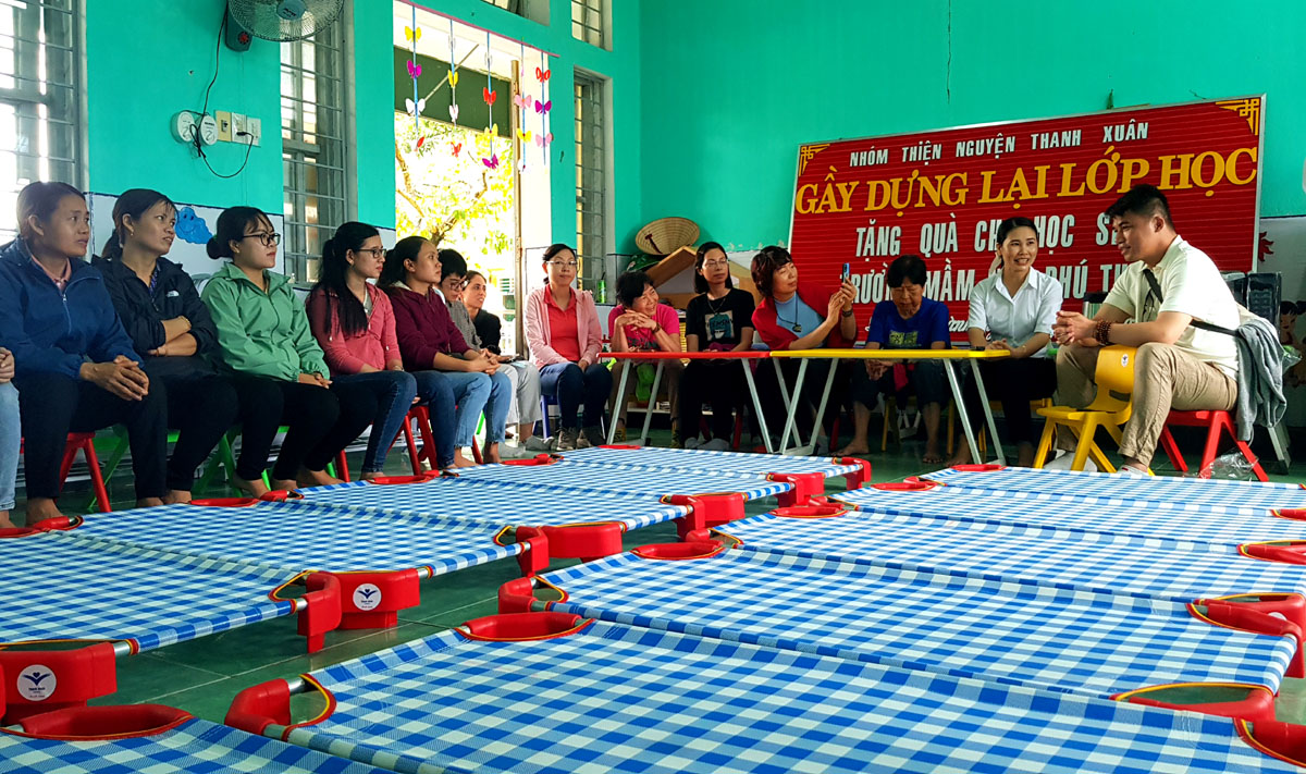 Cô Phan Thị Lệ Huyền, Hiệu trưởng Trường mầm non Phú Thanh cho biết, điểm cơ sở lẻ của trường nằm ở vùng thấp trũng, một số phòng học bán kiên cố, đồ dùng và đồ chơi cho trẻ… bị ngập sâu nên hư hỏng nặng. Cô hiệu trưởng rất bất ngờ, từ ngày 21/10, Thanh Xuân đã chuyển về 300 thùng sữa, nước lọc để trường phát cho trẻ ngay sau lũ rút. Đặc biệt, đợt này trường được nhóm hỗ trợ giường ngủ cho trẻ, ti vi, tủ đựng chăn màn, giá đựng đồ chơi… “Thật quá ý nghĩa đối với cô trò một ngôi trường vùng thấp trũng còn khó khăn như chúng em”, cô Huyền xúc động.