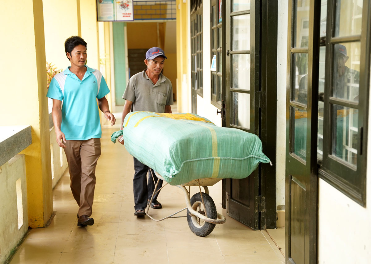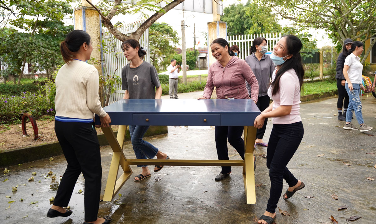 Những chiếc bàn được mạnh thường quân đích thân gửi về Trường mầm non Phú Thanh