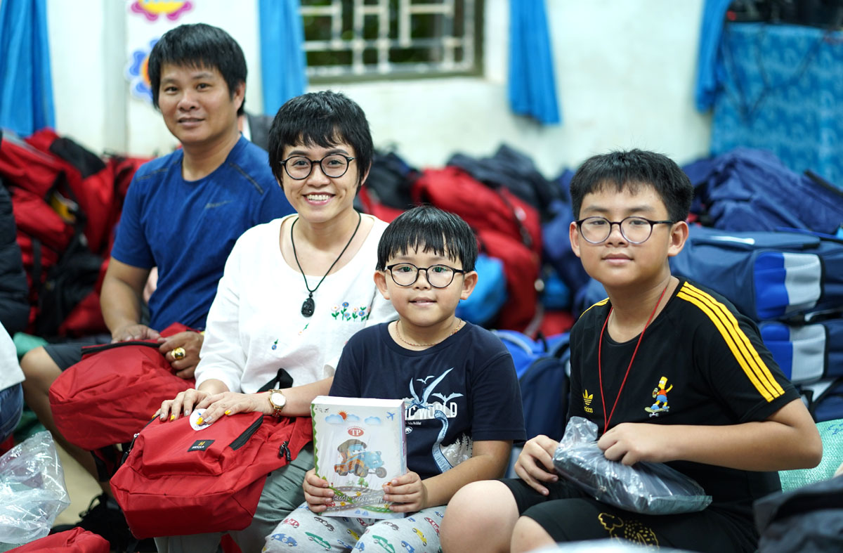 Các thành viên gia đình chị LêThị Cường - nhóm Thanh Xuân đến từ Đà Nẵng- cùng tham gia chia sẻ với học sinh khó khăn