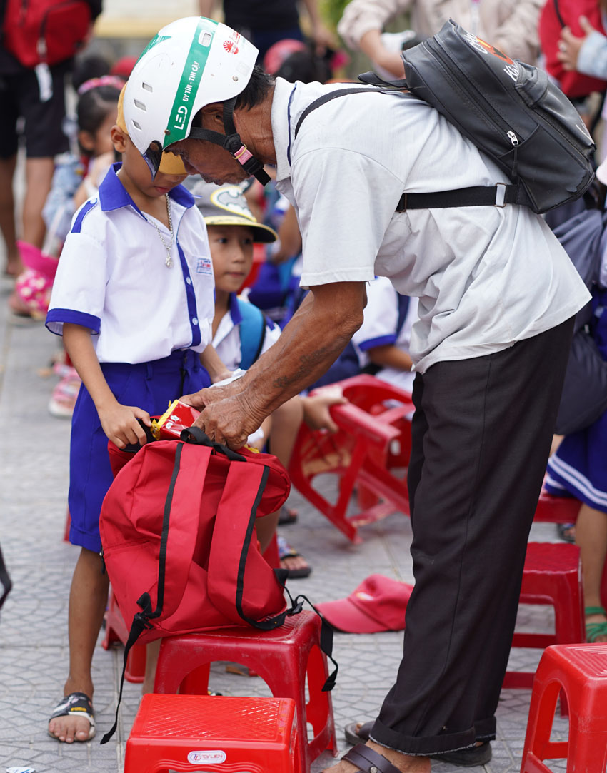 Thầy giáo Trần Bá Trai, Hiệu trưởng Trường tiểu học Quảng Thành, huyện Quảng Điền cũng trong tâm trạng vui cùng hàng trăm học sinh khi các em đều nhận được sữa, bánh, nước vào ngày đầu đến trường sau mưa lũ. Hôm nay, mỗi em còn nhận được ba lô, áo ấm, sách vở. Trường được hỗ trợ 8 bộ máy tính mới, tivi, labtop… phục vụ công tác giảng dạy và học tập.