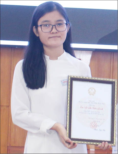 Lê Thị Kiều Trinh được Chủ tịch UBND tỉnh khen thưởng vì có thành tích tốt trong kỳ thi