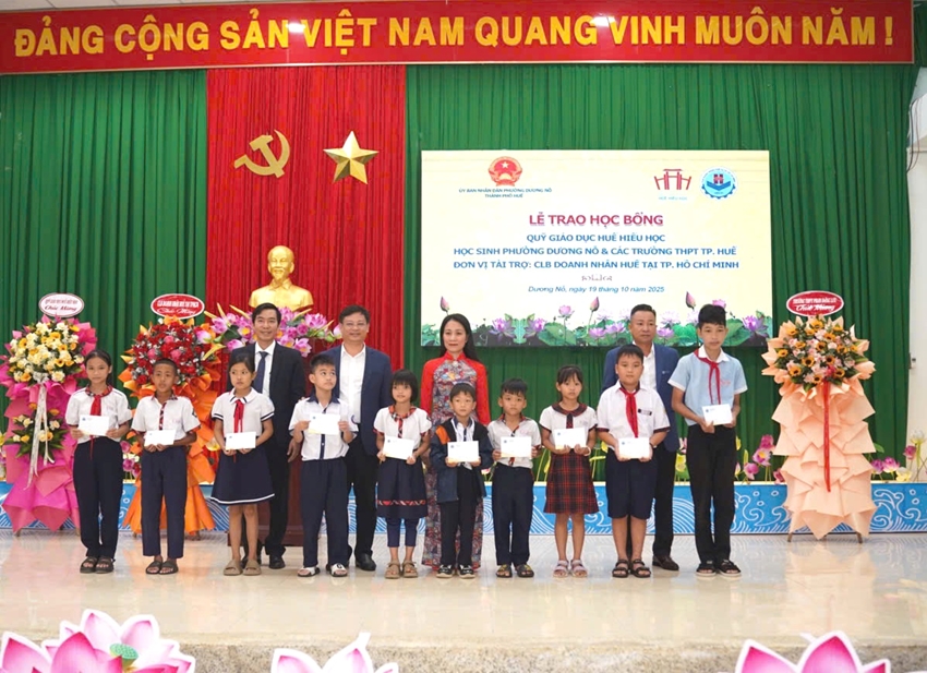Nhằm giúp các em học sinh có hoàn cảnh khó khăn có thêm điều kiện học tập, năm học 2025-2026, Quỹ giáo dục Huế Hiếu học được sự tài trợ của CLB Doanh nhân Huế tại TP. Hồ chí Minh trao 220 suất học bổng trị giá 168 triệu đồng cho học sinh phường Dương Nỗ và các trường THPT: Phan Đăng Lưu, Hai Bà Trưng, Quốc Học - Huế, Nguyễn Chí Thanh, Phong Điền, Nguyễn Đình Chiểu, Tam Giang và Trần Văn Kỷ.