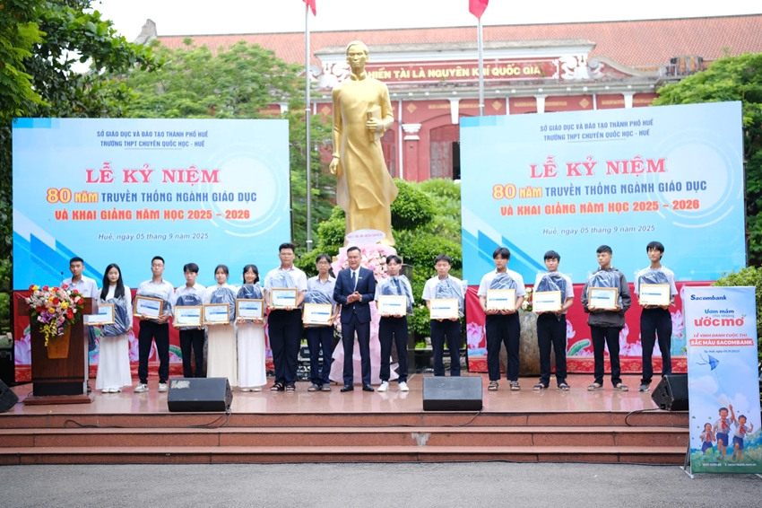 Theo đó, Sacombank đã trao học bổng tại các trường: THPT Chuyên Quốc Học Huế; THPT Nguyễn Huệ; THCS Phú Bài; THCS Nguyễn Chí Diểu; THCS Duy Tân; THCS Lộc Sơn; THPT Thuận An; THPT Nguyễn Chí Thanh. Mỗi suất trị giá 1,5 triệu đồng kèm ba lô. Ngoài ra, trên địa bàn còn có 4 học sinh nhận giải thưởng từ cuộc thi vẽ “Sắc màu Sacombank”.