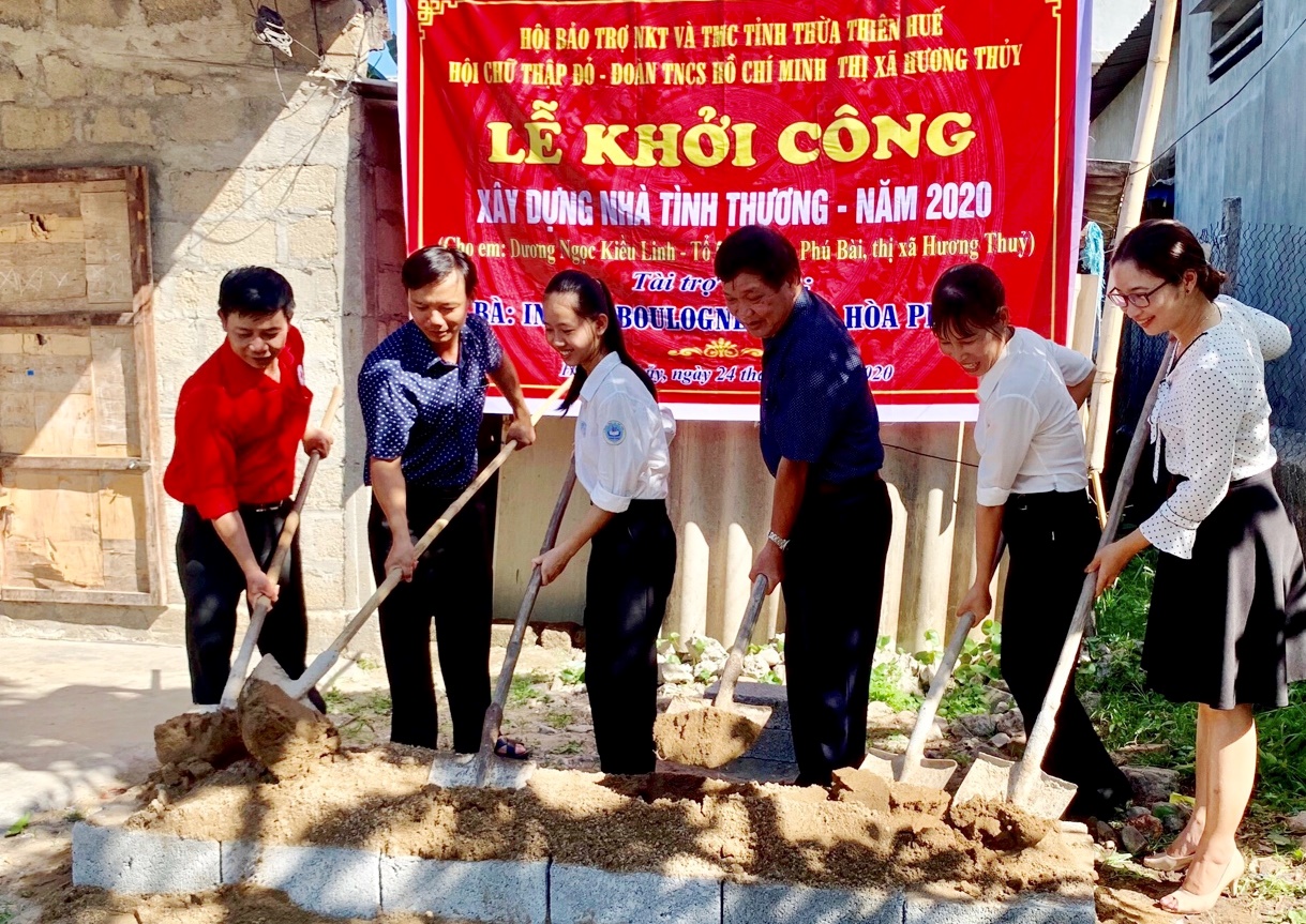 HNN.VN - Sáng 24/6, Hội Bảo trợ người khuyết tật và trẻ mồ côi tỉnh, Hội Chữ thập đỏ, Thị đoàn Hương Thủy phối hợp khởi công xây dựng nhà tình thương cho học sinh có hoàn cảnh đặc biệt khó khăn trên địa bàn.