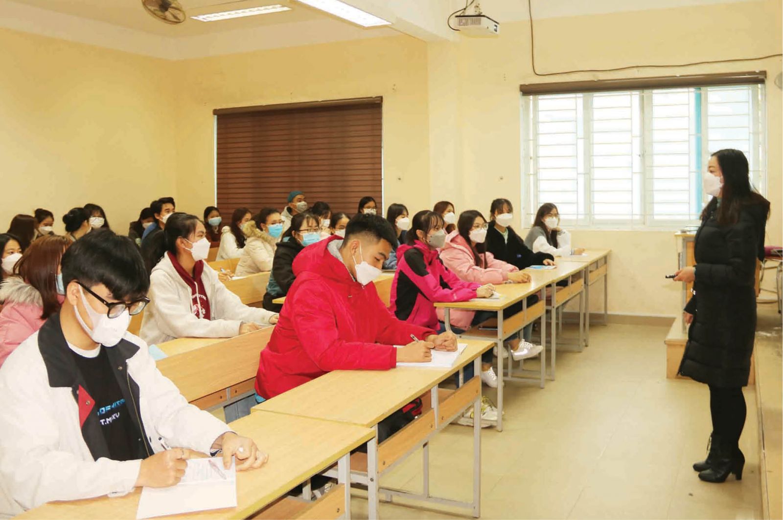 Lớp học tại Trường Du lịch - Đại học Huế trong tuần đầu tiên trở lại học trực tiếp
