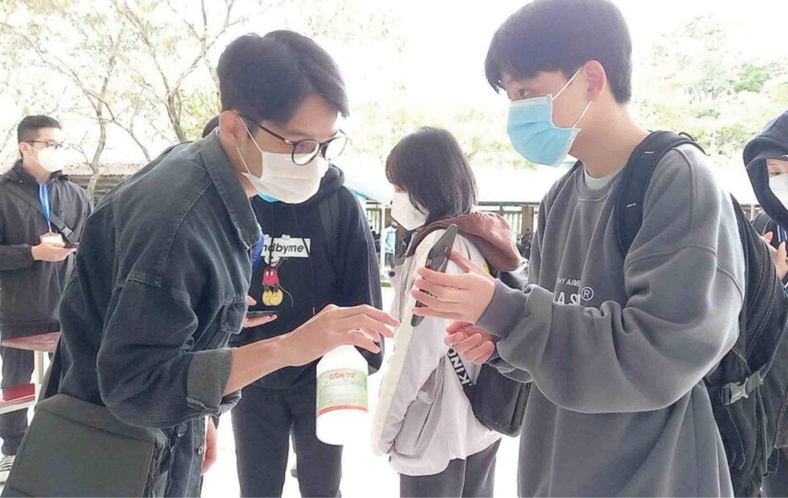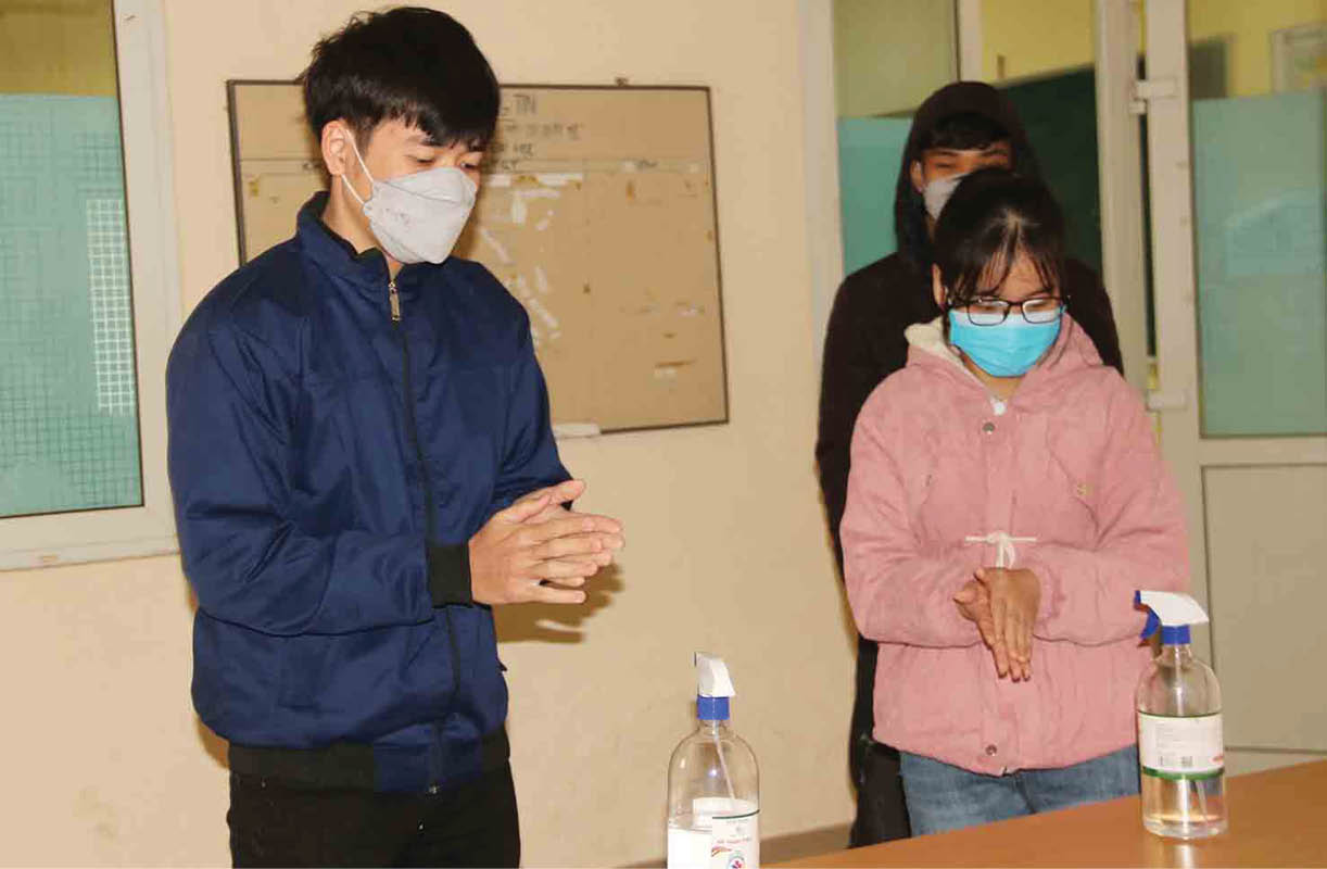 Sinh viên rửa tay sát khuẩn trước khi vào lớp học