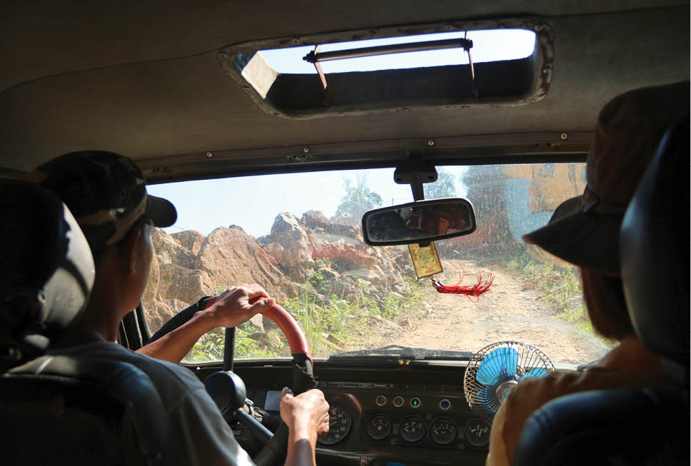 Đi xe từ Huế vào đến trung tâm thị trấn Nam Trà My (tỉnh Quảng Nam) mất hơn 5 tiếng đồng hồ. Vậy nhưng, so với hành trình 3 tiếng tiếp theo ngồi trên xe U-oát vượt qua hàng ngàn ổ gà, ổ voi và chặng đường dài cuốc bộ lên núi để đến khu nghiên cứu sâm thì chẳng thấm tháp chi.