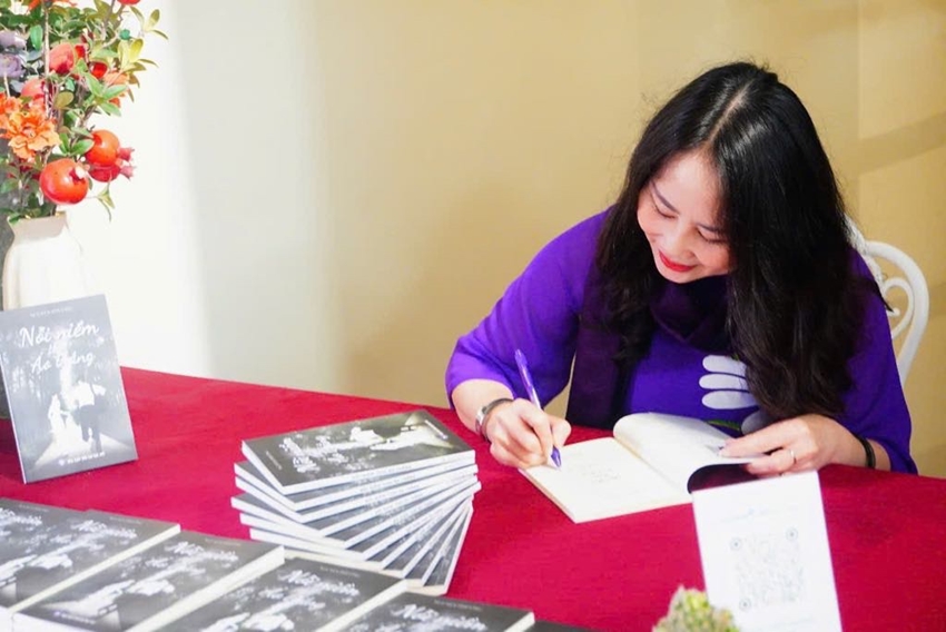 | Tác giả ký tặng sách tại buổi ra mắt |