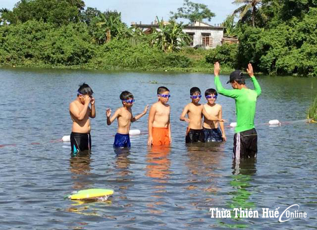 Một khóa học bơi ở hồ “mở” thuộc dự án phổ cập bơi năm 2016