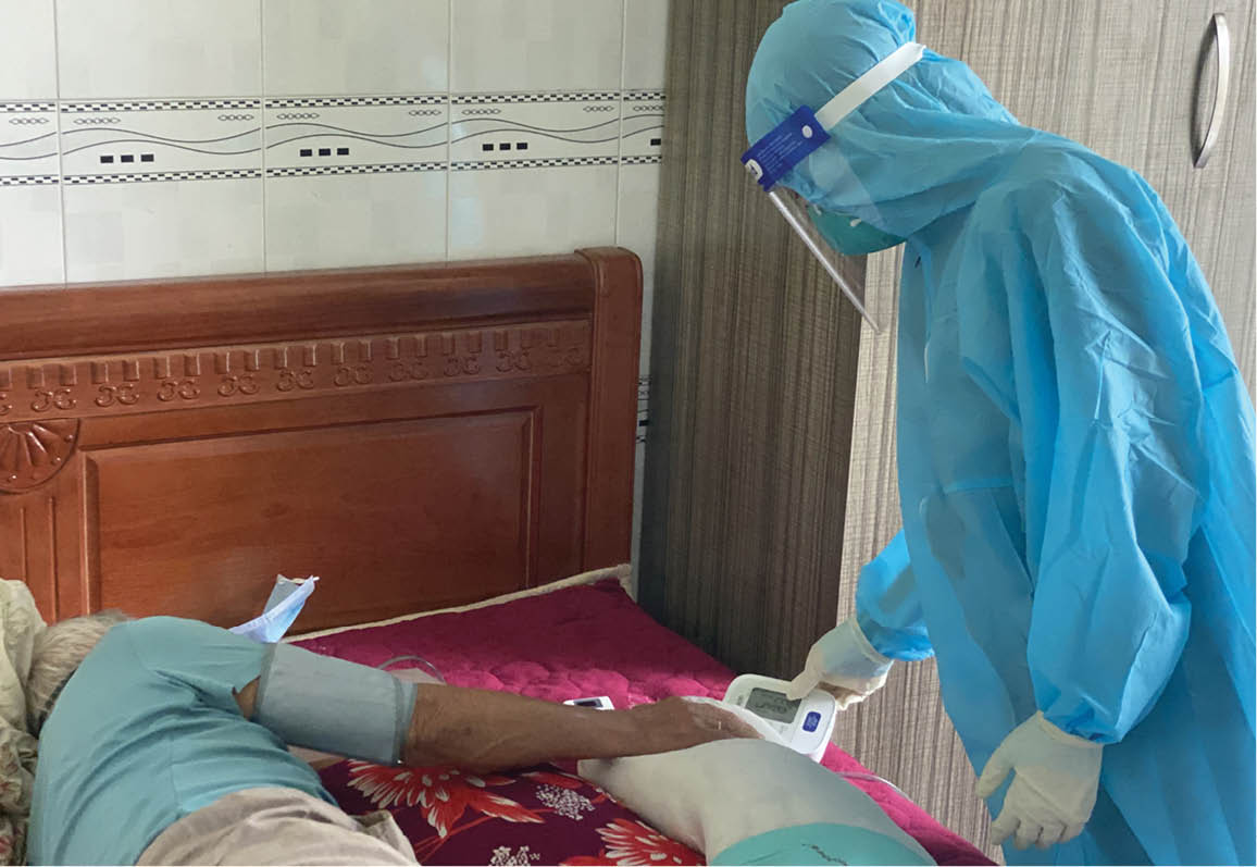 Trịnh Ngọc Tấn đang cấp cứu cho bệnh nhân F0 điều trị tại nhà
