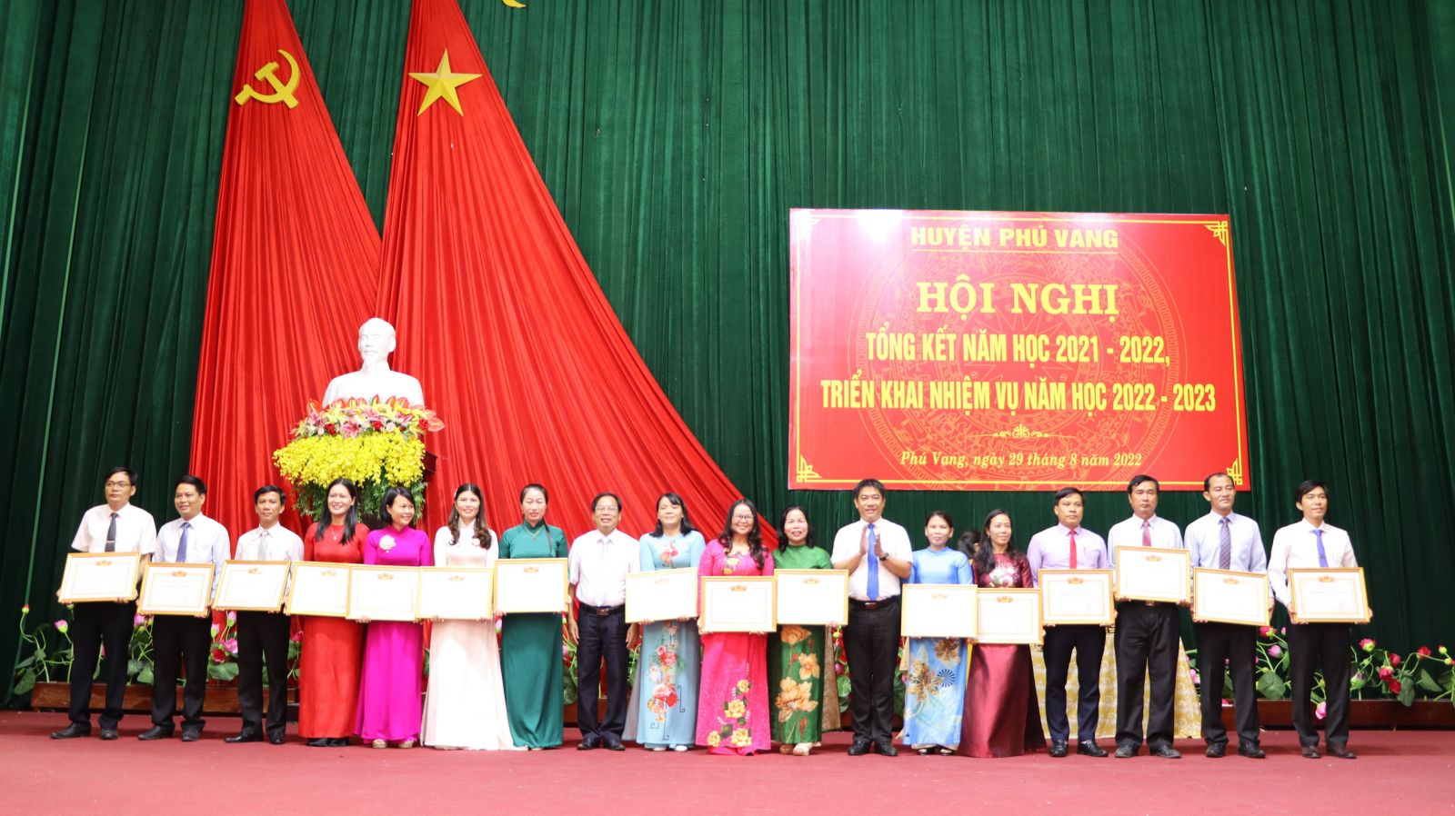 Dịp này, 16 tập thể được UBND tỉnh công nhận đạt danh hiệu lao động xuất sắc; 2 tập thể, 15 cá nhân được Chủ tịch UBND tỉnh tặng bằng khen trong việc thực hiện nhiệm vụ giáo dục và đào tạo năm học 2021-2022.