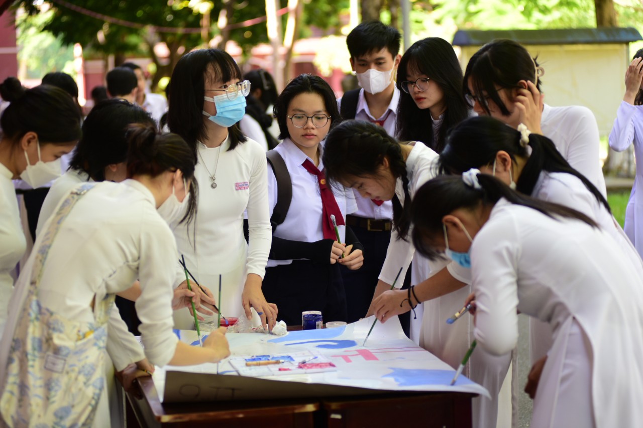 Vẽ tranh về áo dài truyền thống ở Trường THPT Hai Bà Trưng