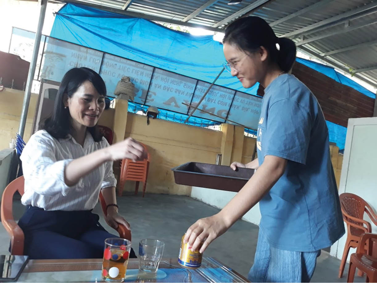 Hồ Thị Nhật Linh (đứng) phụ bán cà phê giúp anh, chị