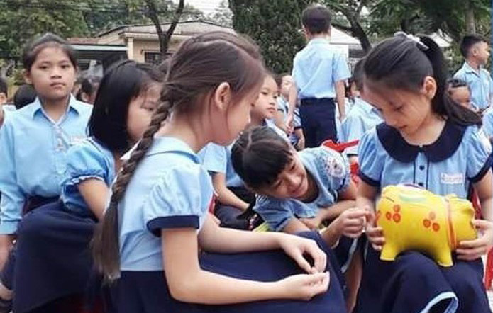 Các em học sinh hưởng ứng phong trào nuôi heo đất