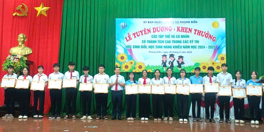 Ghi nhận, biểu dương những nỗ lực, kiên trì rèn luyện của các em học sinh và đóng góp của đội ngũ nhà giáo, dịp này UBND TX. Phong Điền tuyên dương 318 học sinh xuất sắc và 3 tập thể, cùng 9 cán bộ, giáo viên đạt thành tích cao trong công tác bồi dưỡng học sinh giỏi, học sinh năng khiếu, đạt giải cao qua các kỳ thi năm học 2024-2025.