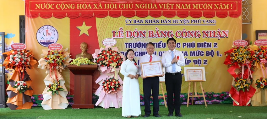 Ngày 14/3/2023, UBND tỉnh ra quyết định công nhận Trường tiểu học Phú Diên 2 đạt chuẩn quốc gia mức độ 1. Tại buổi lễ, ông Trần Gia Công, TUV, Bí thư Huyện ủy Phú Vang đã trao Bằng công nhận trường đạt chuẩn Quốc gia mức độ 1; ông Lê Đức Lộc, HUV, Phó Chủ tịch UBND huyện đã trao Bằng đạt kiểm định chất lượng giáo dục cấp độ 2 cho nhà trường.