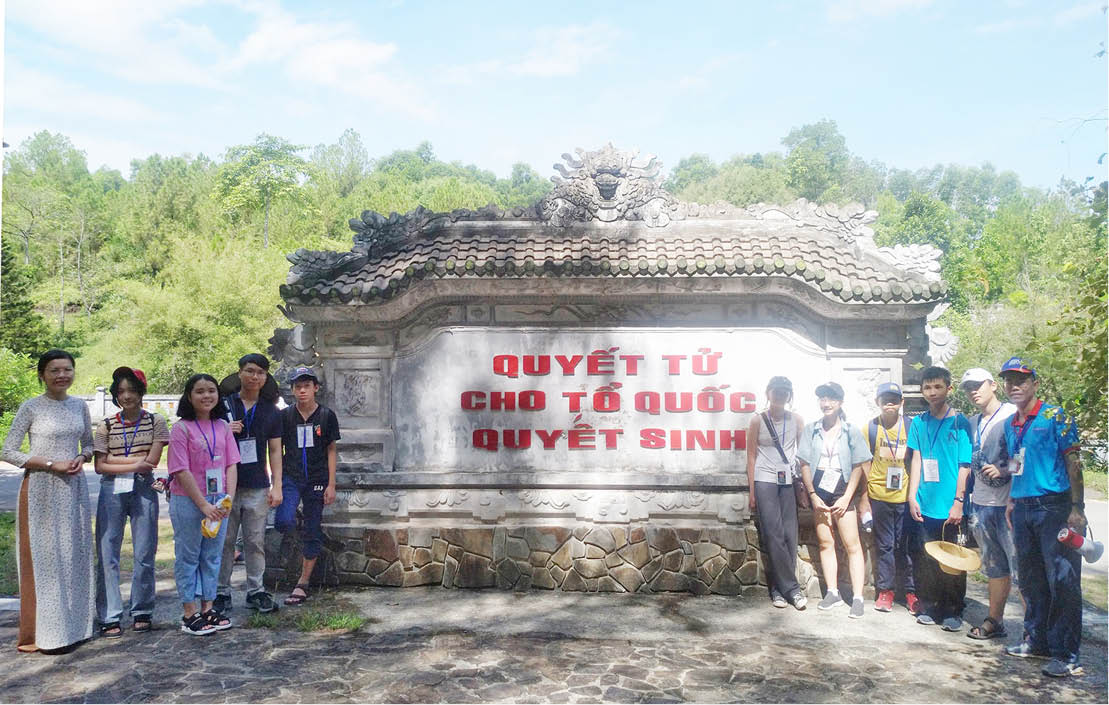 Các bạn trẻ tham quan và chụp ảnh lưu niệm di tích lịch sử Chín Hầm