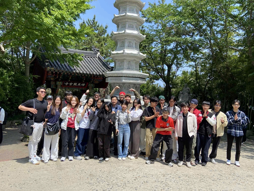 | Lớp chúng tôi chụp hình lưu niệm trước cổng trường ở Busan |