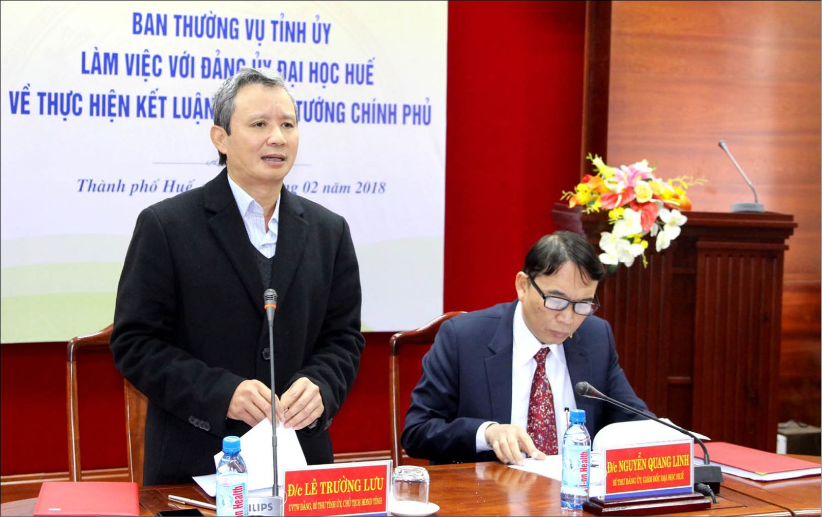 Lãnh đạo ĐHH và các trường thành viên cũng đề xuất với Bí Thư Tỉnh ủy và các đồng chí trong Ban Thường vụ Tỉnh ủy về phát triển các giải pháp khoa học và công nghệ để áp dụng tại địa phương. Mong rằng, tỉnh có sự đặt hàng về giống thuỷ sản cho ĐHH; giao ĐHH phát triển vùng dược liệu khoảng 50 -100 ha ở các huyện: A Lưới, Phú Lộc, Nam Đông; kết hợp đầu tư cơ sở hạ tầng truyền dữ liệu hồ sơ bệnh án, bảo hiểm y tế ở các trạm y tế xã phường.